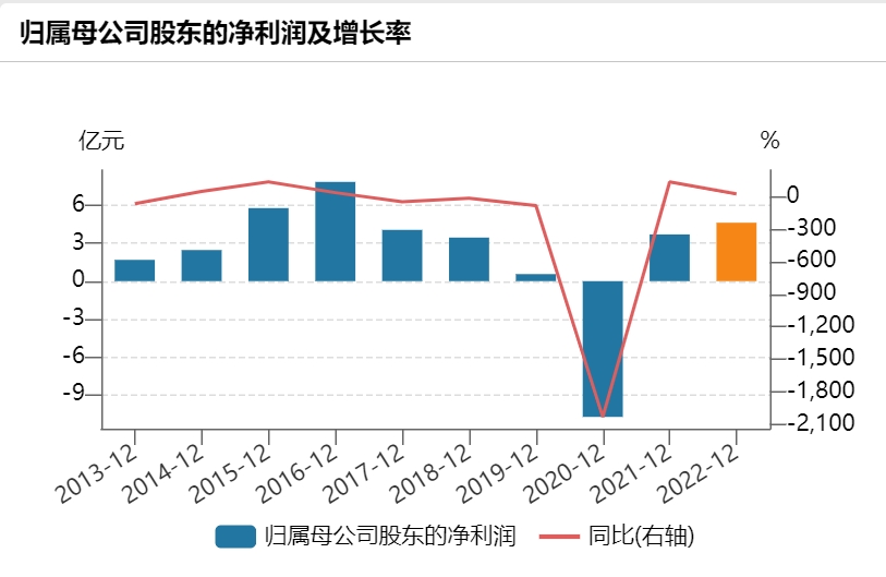 哈药股份2013年至2022年归母净利润表现